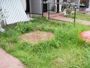 このように草が生えている場合は、草取りから取り掛かります。