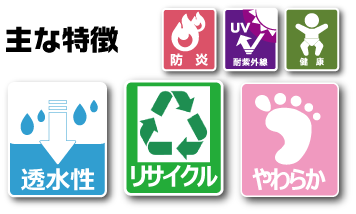 人と環境に優しいだけでなく、透水性・柔軟性・防草効果がある進化系人工芝です。