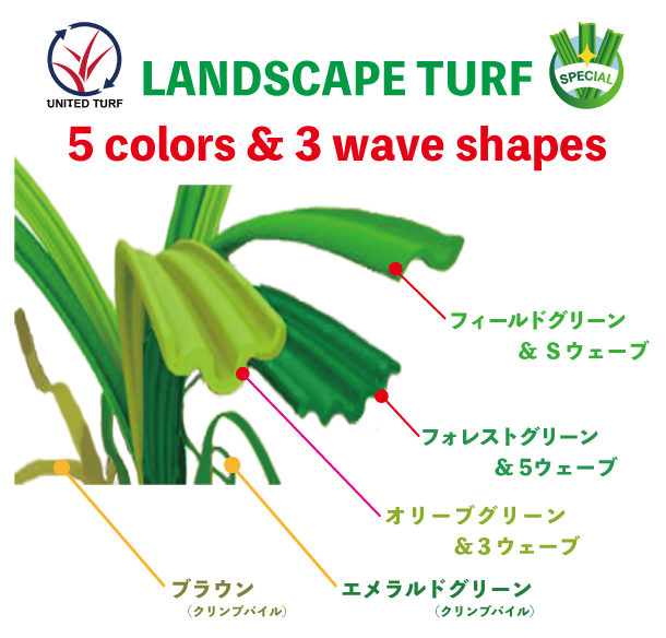 ■日本初の5色パイル人工芝!(ストレートパイル3色+クリンプパイル2色)
